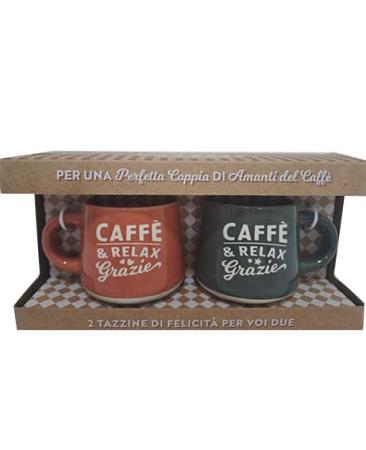 Set 2 tazzine con frase: CAFFE’ E RELAX GRAZIE