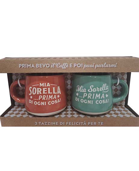 Set 2 tazzine con frase: MIA SORELLA PRIMA DI OGNI COSA