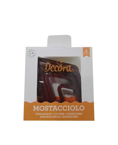 Kit composto da 5 tagliapasta di varie misure per realizzare i mostaccioli. Realizzato in plastica.