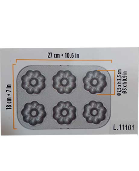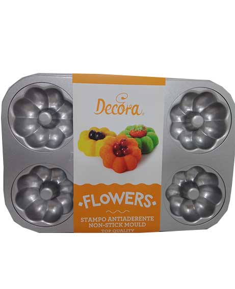 Teglia flowers con rivestimento antiaderente di alta qualità composto da 6 cavità. Semplice da utilizzare è perfetto per realizzare preparazioni dolci e salate. Facile da decorare: i tuoi dolci potranno essere gustati con una semplice spolverata di zucchero a velo o decorati con perline, ghiaccia reale o pasta di zucchero.