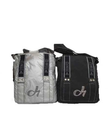 Realizzata in poliestere con chiusura a strappo. All’interno una tasca con chiusura a zip per riporre piccoli oggetti. tracolla regolabile.