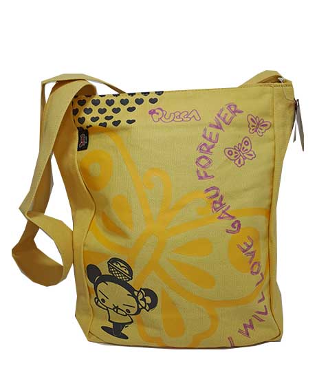 Tracolla PUCCA gialla realizzata in poliestere. La tracolla i può accorciare eseguendo un nodo in alto. Chiusura z zip.