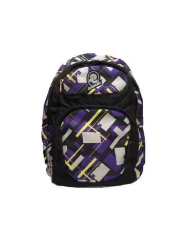 zaino Invicta tondo realizzato in tessuto poliestere, schienale rinforzato, spallacci rinforzati e rivestiti di tessuto, base morbida. Composto da due scomparti per poter dividere libri da quaderni. All’interno scomparto per mettere il PC nel primo scomparto mentre nel secondo scomparto c’è una tasca con chiusura a zip per riporre piccoli oggetti. Sul davanti un’ulteriore tasca con chiusura a zip per riporre la merenda.