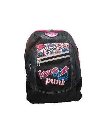 Zaino Seven tondo realizzato in tessuto poliestere, schienale rinforzato, spallacci rinforzati e rivestiti di tessuto, base rigida. Composto da due scomparti con chiusura a zip per separare libri da quaderni. Sul davanti una tasca più piccola per riporre la merenda e un’ulteriore tasca per riporre piccoli oggetti. Tutti gli scomparti sono con chiusura a zip.
